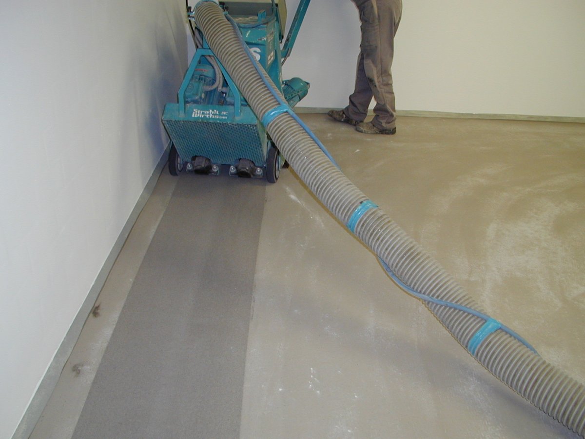 Die Minimierung der Staubbelastung erfolgt durch Anschluss einer leistungsfähigen Absauganlage. Wir verfügen über mehrere solcher Geräte und können daher auch Großflächen in kürzester Zeit bearbeiten.